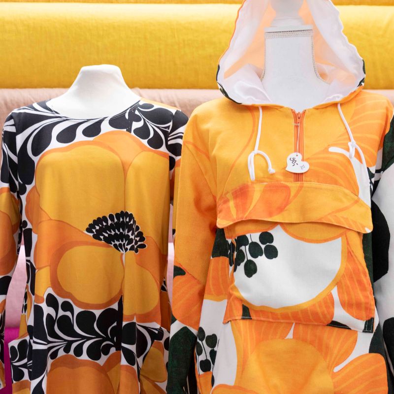 Kivijalkaliikkeessämme on jo myynnissä laadukkaista kankaistamme valmistettuja ihania käyttövaatteita naisille ja lapsille.
